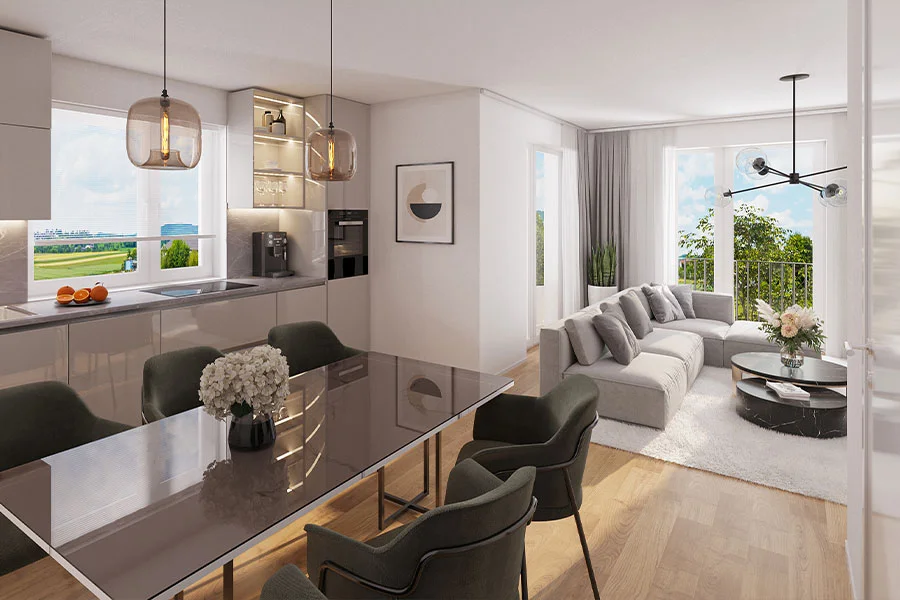 Im ersten Bauabschnitt erstellen wir 23 Wohnungen. Diese zeichnen sich durch optimal organisierte Grundrisse und eine moderne Raumgestaltung aus. Die Fakten im Überblick: